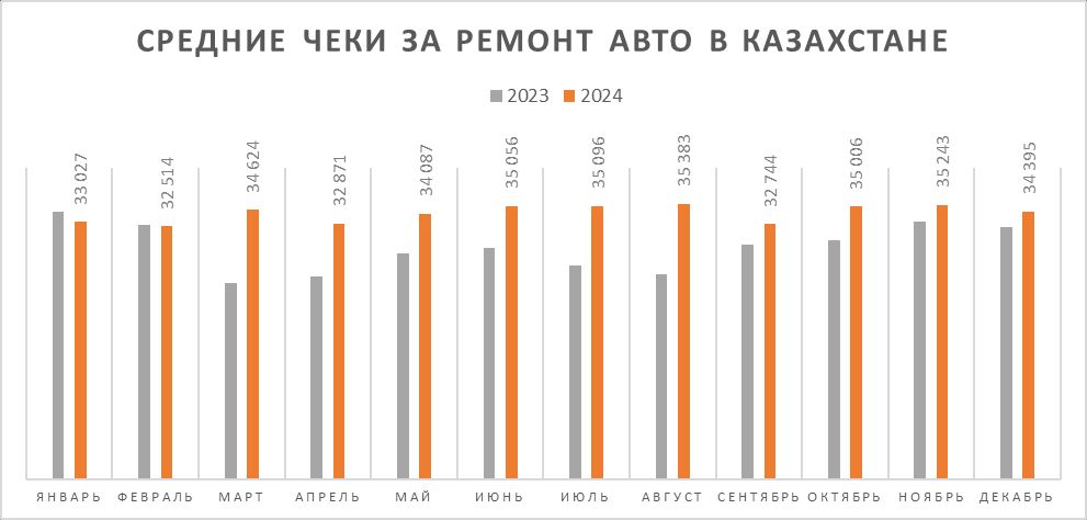 Аналитическая служба международной сети автосервисов FIT SERVICE проанализировала стоимость обслуживания автомобилей в Казахстане. По итогам 2024 года средний чек за ремонт авто составляет 34 100 тенге. За год он вырос на 16%, если сравнивать показатель с позапрошлым годом.