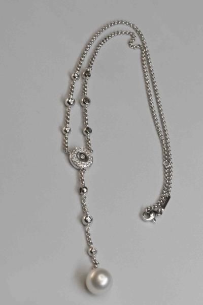 Описание объекта: Колье "Сhopard" - бриллианты, жемчуг культивированный; общая масса - 19,7 гр., масса металла - 16,98 гр.; цвет металла - белое золото; описание клейм- Chopard; проба - 750; общее кол-во камней: 1 жемчуг, 50 бриллиантов.