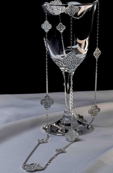 Описание объекта: Цепочка, бриллианты; описание клейм - Van Cleef; общая масса - 84 гр.; масса металла - 80,6 гр.; цвет металла - белое золото; проба - 750; общее кол-во камней: бриллианты (16,92 карат);