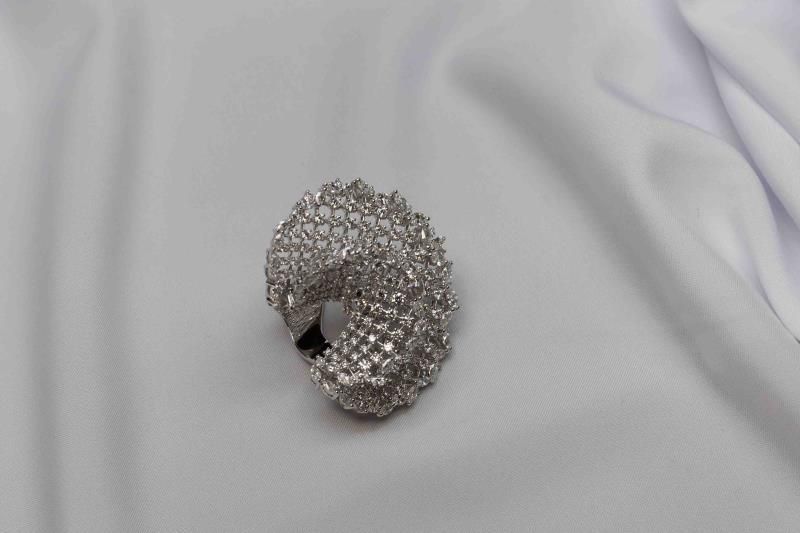 Описание объекта: Кольцо, бриллианты; общая масса - 37 гр.; масса металла - 35,38 гр.; описание клейм - YEPREM; цвет металла - белое золото; проба - 750; общее кол-во камней 85 бриллиантов