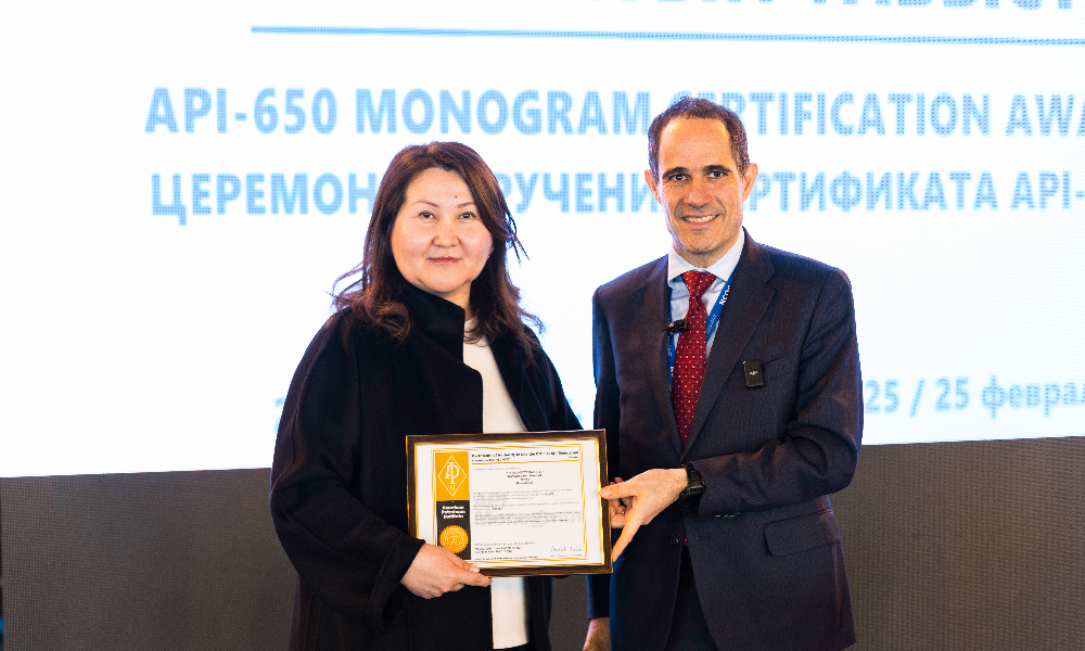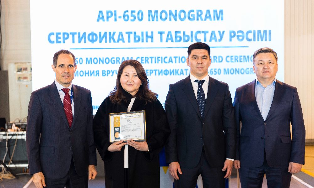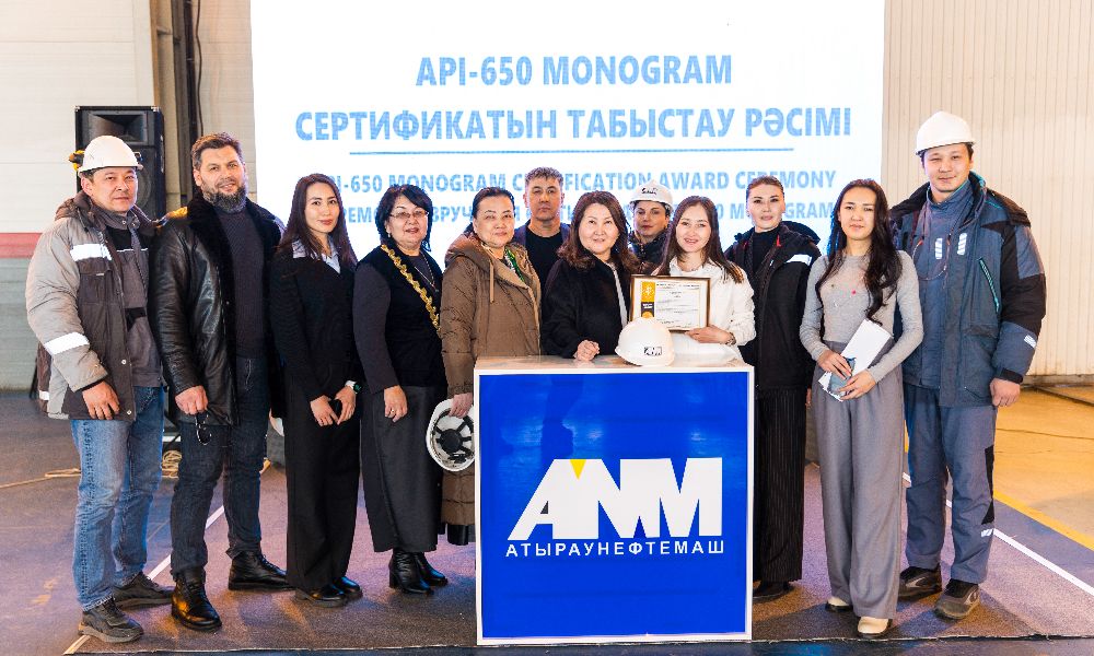 Казахстанская компания «АтырауНефтеМаш» специализируется на производстве оборудования для нефтегазовой отрасли. Сертификат на право использования монограммы 650 API был выдан ей после ряда проверок и испытаний, проведенных Американским нефтяным институтом. Они подтверждают, что отечественный производитель привержен международным стандартам для сборных стальных листов и резервуаров заводского изготовления, которые используются в добыче нефти и газа.