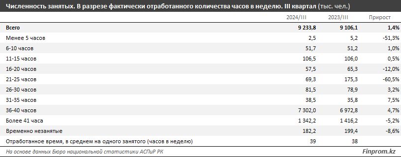 В среднем граждане страны работали 39 часов в неделю, против 38 часов годом ранее, то есть времени на досуг у казахстанцев оставалось меньше.
