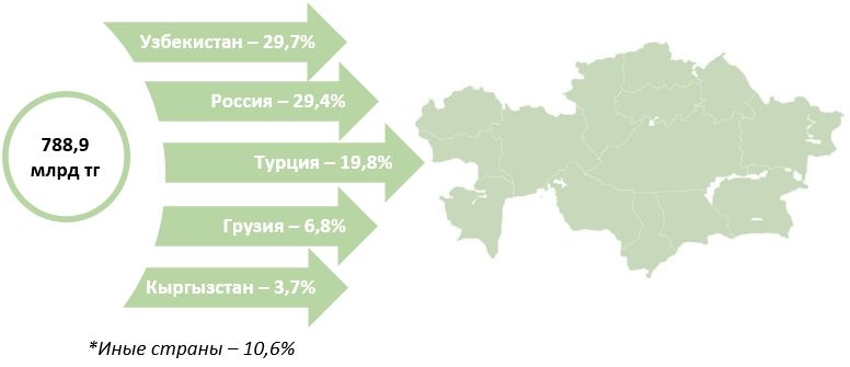 Объем отправленных за рубеж переводов денег составил 788,9 млрд тенге или 77% совокупного объема трансграничных переводов, проведенных через СМДП. Средняя сумма одного перевода из Казахстана за рубеж составила 373,6 тыс. тенге.