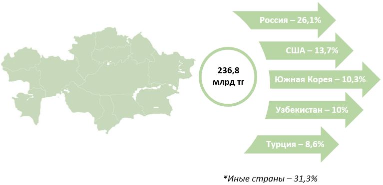 Объем полученных из-за рубежа переводов денег составил 236,8 млрд тенге или 23% совокупного объема трансграничных переводов, проведенных через СМДП. Средняя сумма одного перевода в Казахстан из-за рубежа составила 300,6 тыс. тенге.