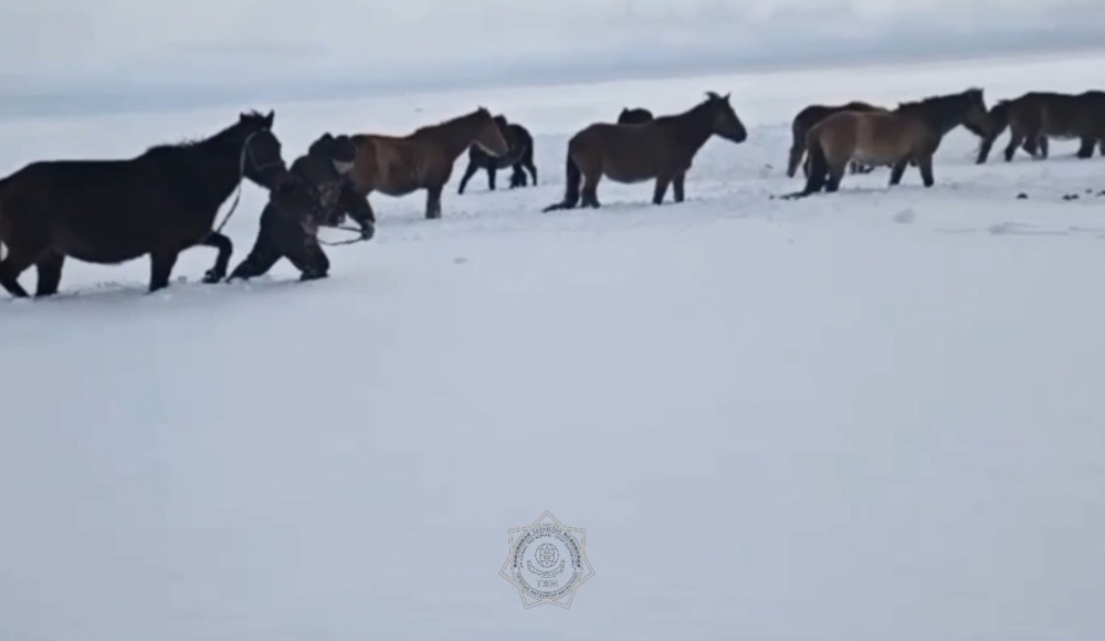 Жители Караагашского сельского округа Алгинского района Актюбинской области обратились к сотрудникам МЧС за помощью в вызволении табуна лошадей, увязшего в глубоком снегу.