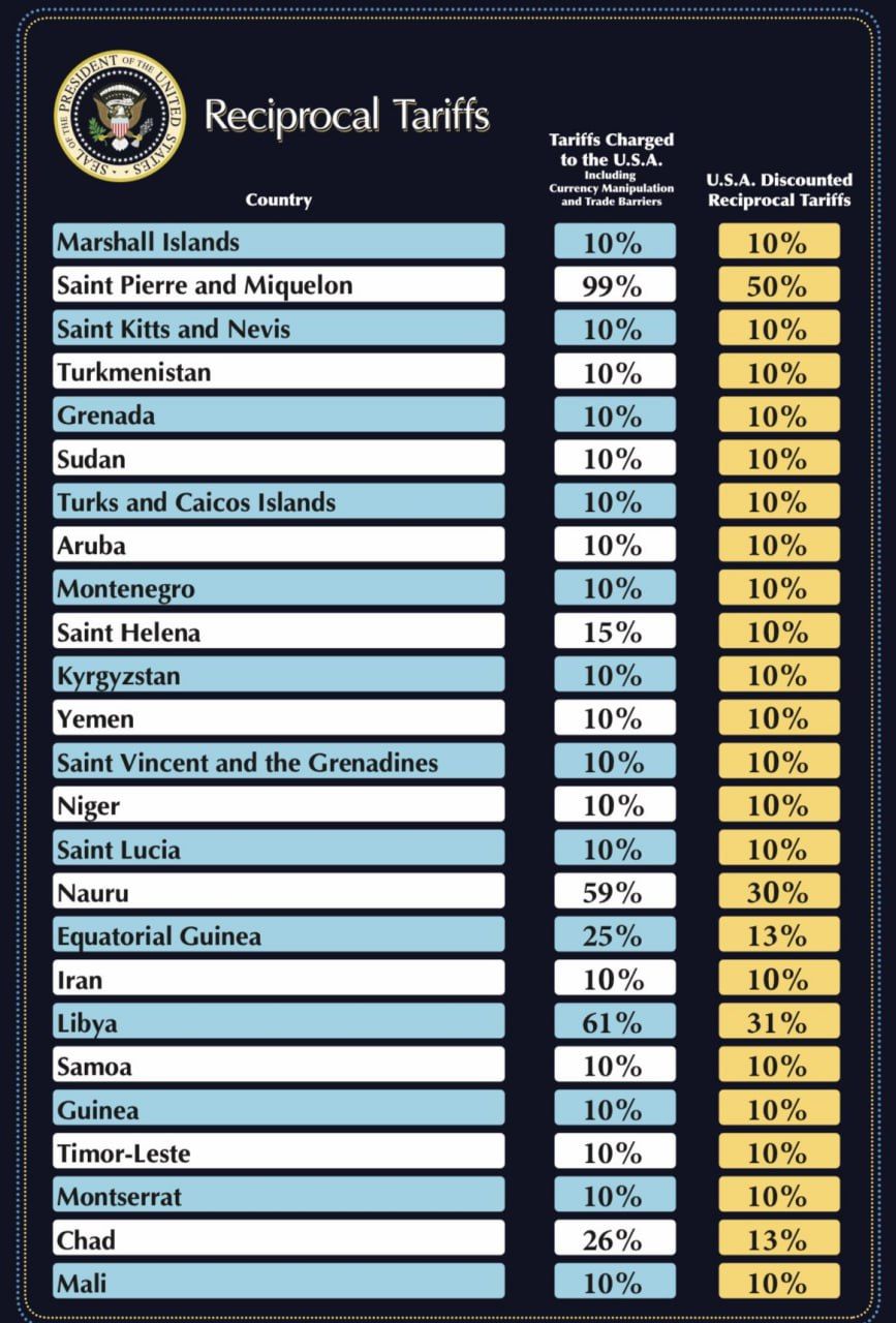 В указе подчёркивается, что цель новых пошлин — добиться от зарубежных партнёров «взаимности» в доступе на их рынки, а также укрепить американскую промышленность и технологии.