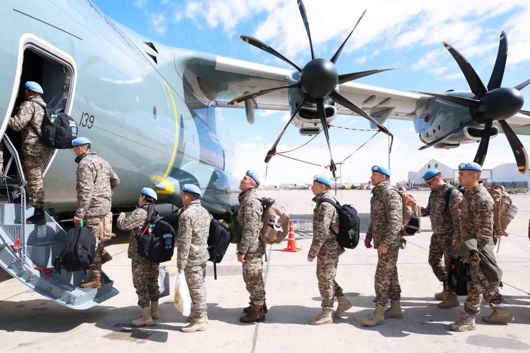 Первый казахстанский контингент, насчитывавший 139 военнослужащих и 26 единиц техники, был направлен в зону конфликта в марте 2024 года. За время службы они обеспечивали безопасность на наблюдательных постах, патрулировали территорию, сопровождали гуманитарные грузы и участвовали в обезвреживании взрывоопасных предметов. Работа казахстанских военных получила высокую оценку со стороны командования ООН.