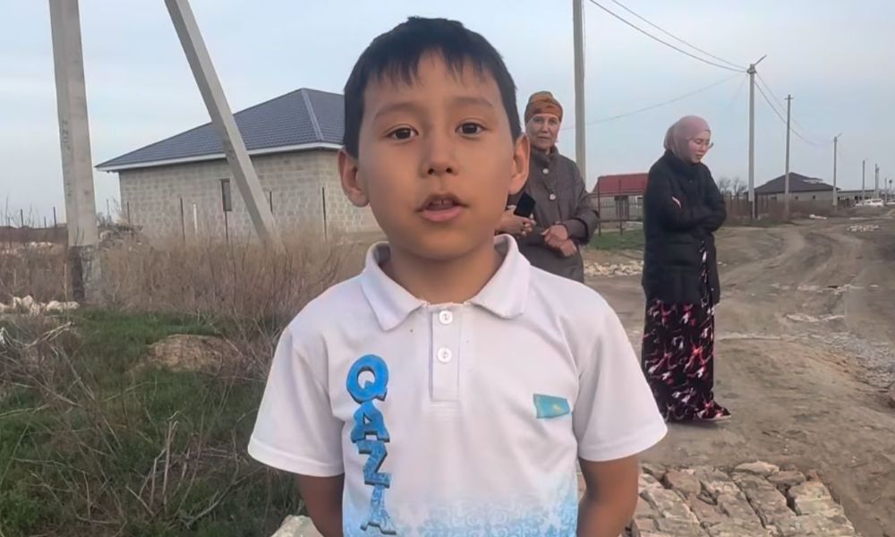 – Я учусь в школе имени Гагарина. Школа находится в городе, а мы живём на окраине. Раньше дороги у нас не было, потом насыпали щебень. Но как только идёт дождь, щебень смешивается с грязью, и машины проехать не могут. Мы ходим в резиновых сапогах, поверх надеваем пакеты. Иногда падаем в грязь и приходим в школу грязными. У меня просьба к акиму – пусть нам построят нормальную дорогу, – сказал школьник на видео.