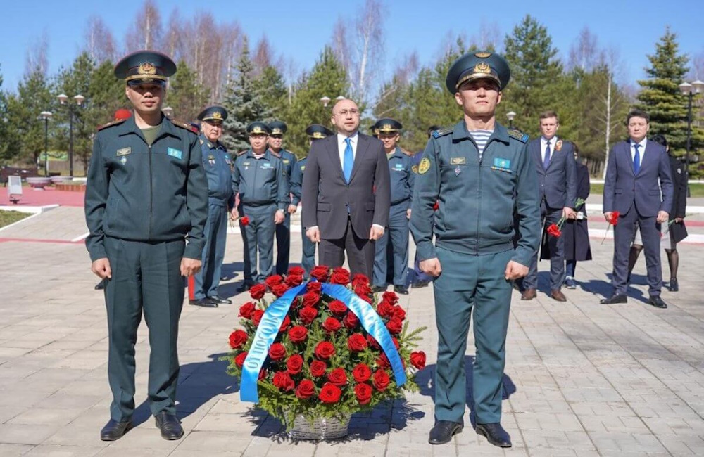 В состав делегации вошли дипломаты посольства Казахстана в России, представители акимата Актюбинской области, а также казахстанские курсанты, обучающиеся в военных вузах РФ.