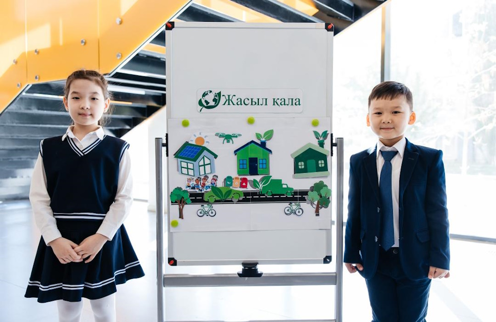 Особое внимание привлёк проект Сатбергена Отепкали и Айбара Закарияна — восьмиклассников Национальной гимназии для одарённых детей. Ребята предложили использовать дождевую воду для получения энергии и озеленения территорий: