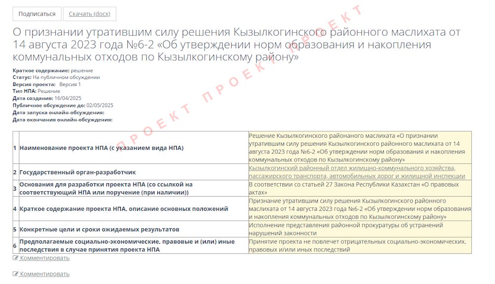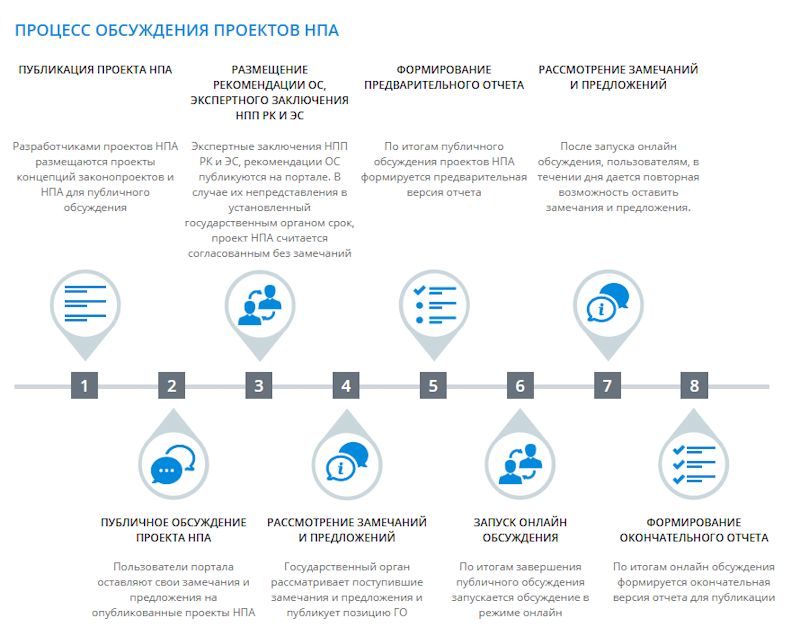 — В связи с последними техническими доработками портала был изменен формат размещения проектов нормативно-правовых актов с целью оптимизации процесса их публичных обсуждений. Теперь для удобства граждан на портале будет размещаться основной текст проекта НПА в формате, удобном для ознакомления. По законопроектам и КДРП (консультативным документам по регулирующей политике) сохраняется прежний порядок. Внесенные изменения не носят временный характер, — ответили в ведомстве.