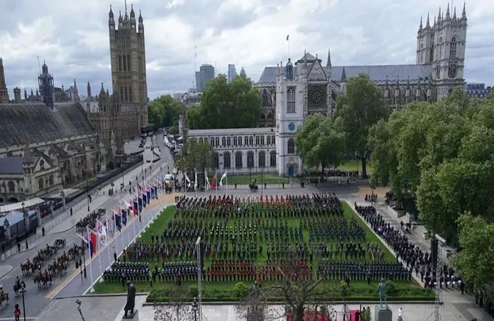 За церемонией наблюдали король Карл III, королева Камилла, принц Уильям с супругой Кейт и детьми. Завершилось шествие пролетом авиации, в том числе истребителей F-35 и бомбардировщика Lancaster, использовавшегося во Второй мировой войне.
