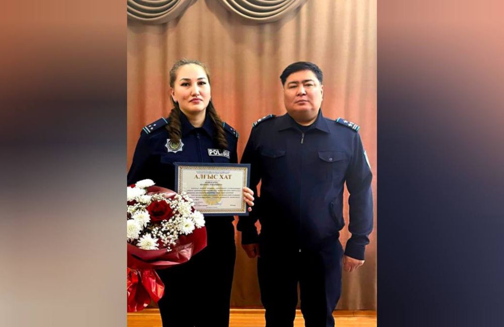 Заместитель начальника ДП Павлодарской области Жандос Орумбаев поздравил инспектора ювенальной полиции северного отдела УП Павлодара Мадину Жумабаеву с победой на Кубке мира по рукопашному бою.
