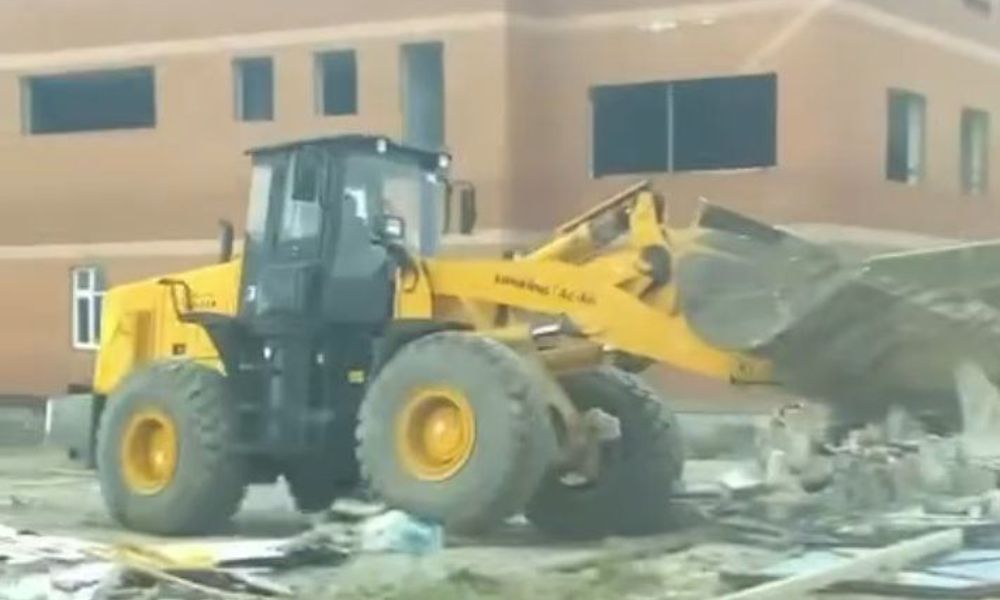 Ближе к пяти часам вечера между крановщиком и водителем погрузчика вспыхнул пьяный конфликт. Понимая, что в рукопашной не победит, водитель решил «отыграться» с помощью спецтехники. Он завёл погрузчик, стоявший во дворе школы, и пошёл в атаку: снес охранную будку, угол школы, забор, а затем направил ковш на автомобиль обидчика, вмяв крышу, разбив бампер и в итоге опрокинув машину (Chevrolet Onix потом признали непригодным для использования).