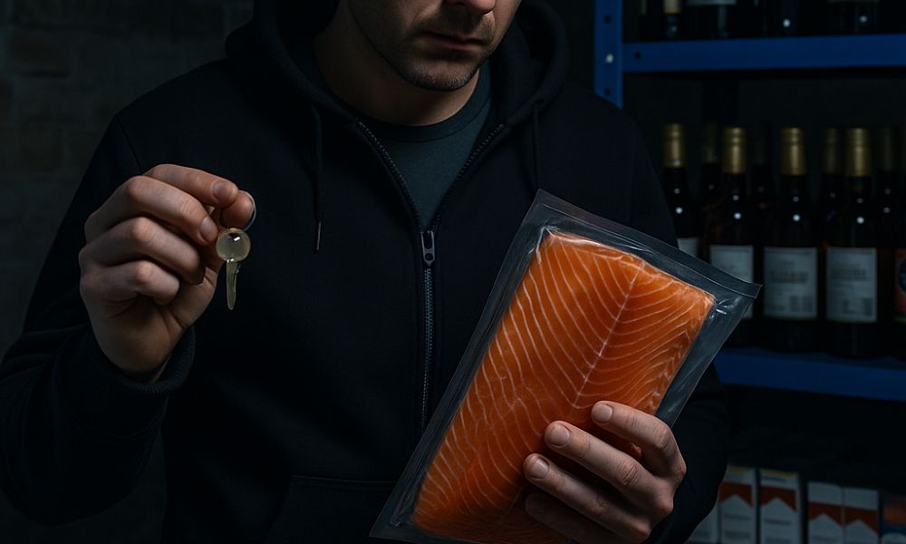 После увольнения горожанин стал навещать склад по ночам. Предметом его слабости были дорогой алкоголь, сигареты и, судя по материалам дела, филе лосося. Рыба, видимо, была его личным фаворитом — именно её он уносил чаще всего и в больших объёмах.