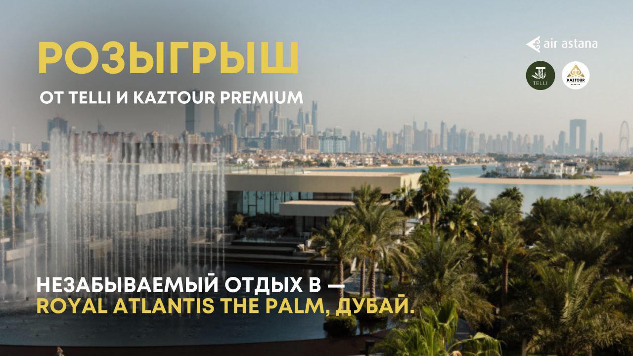 Компания Telli совместно с туроператором Kaztour Premium запустила розыгрыш, главным призом которого станет отдых в одном из самых фешенебельных отелей Дубая — Royal Atlantis The Palm 5.