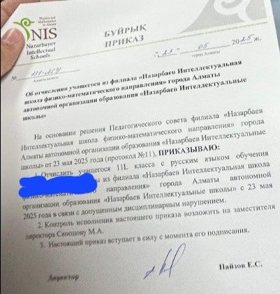 На публикацию ответил глава НИШ Ануар Жангозин, уточнив, что причина — серьезное дисциплинарное нарушение. По его словам, ученик: