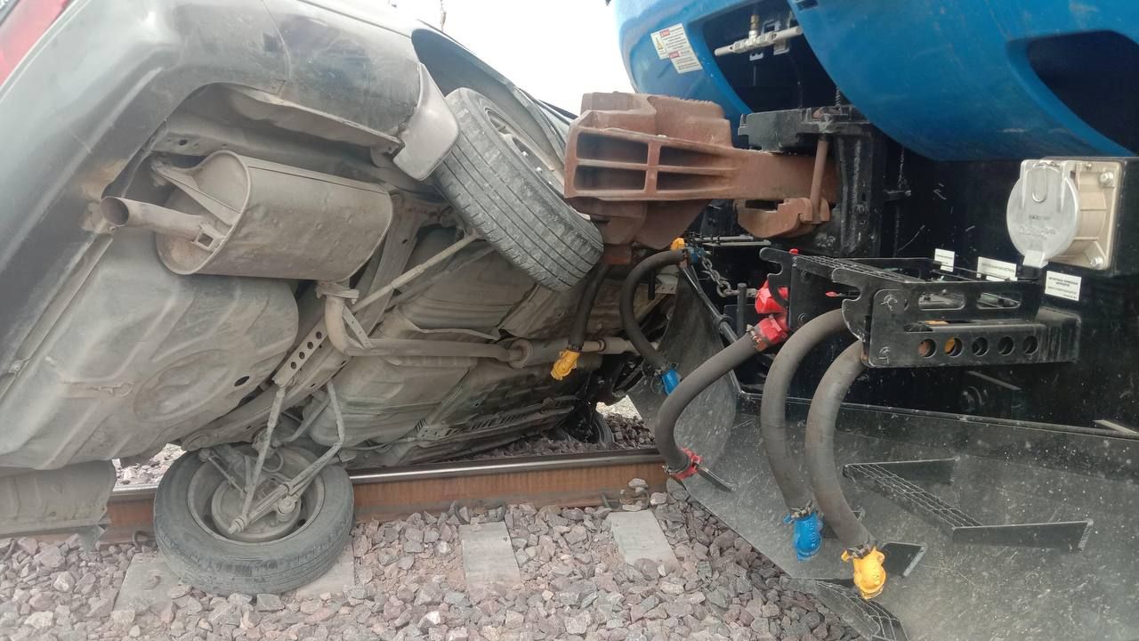 В 12:57 машинист применил экстренное торможение, заметив внезапно выехавший на пути легковой автомобиль. Столкновения избежать не удалось.