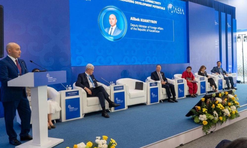 29 мая 2025 года, Астана – Заместитель министра иностранных дел Казахстана Алибек Куантыров принял участие в панельной сессии «Укрепление региональных связей и раскрытие потенциала развития», прошедшей в рамках Международного форума Астана. Мероприятие было организовано совместно с Боаоским форумом для Азии и посвятили расширению транспортной и логистической взаимосвязанности в Евразии, а также развитию Среднего коридора.
