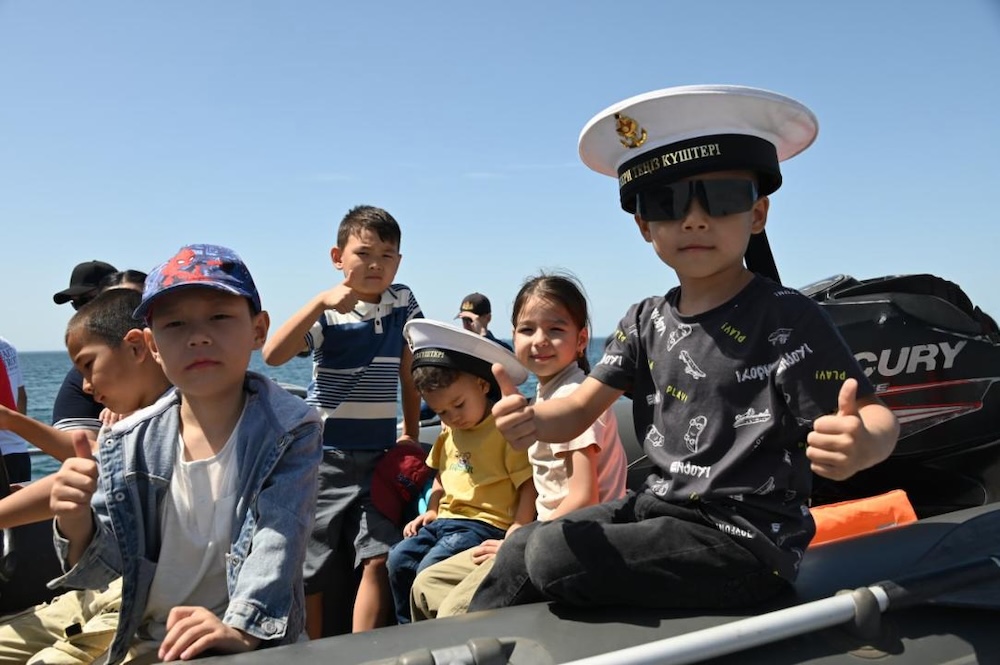 Но самым захватывающим моментом дня стал выход в море на боевых кораблях. В поход по акватории Каспийского моря отправились ракетно-артиллерийские корабли «Орал», «Сарыарка», «Мангистау» и минно-тральный корабль «Алатау». Ребята с восторгом наблюдали завораживающий вид на город со стороны моря.