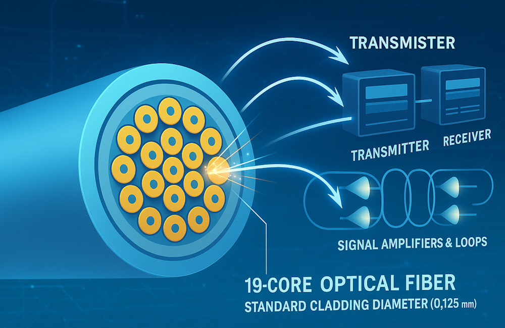 Для рекорда использовалось 19-ядерное оптоволокно со стандартным диаметром оболочки 0,125 мм, что делает его совместимым с текущей инфраструктурой. Такое волокно позволяет одновременно передавать данные по 19 каналам, существенно увеличивая пропускную способность.