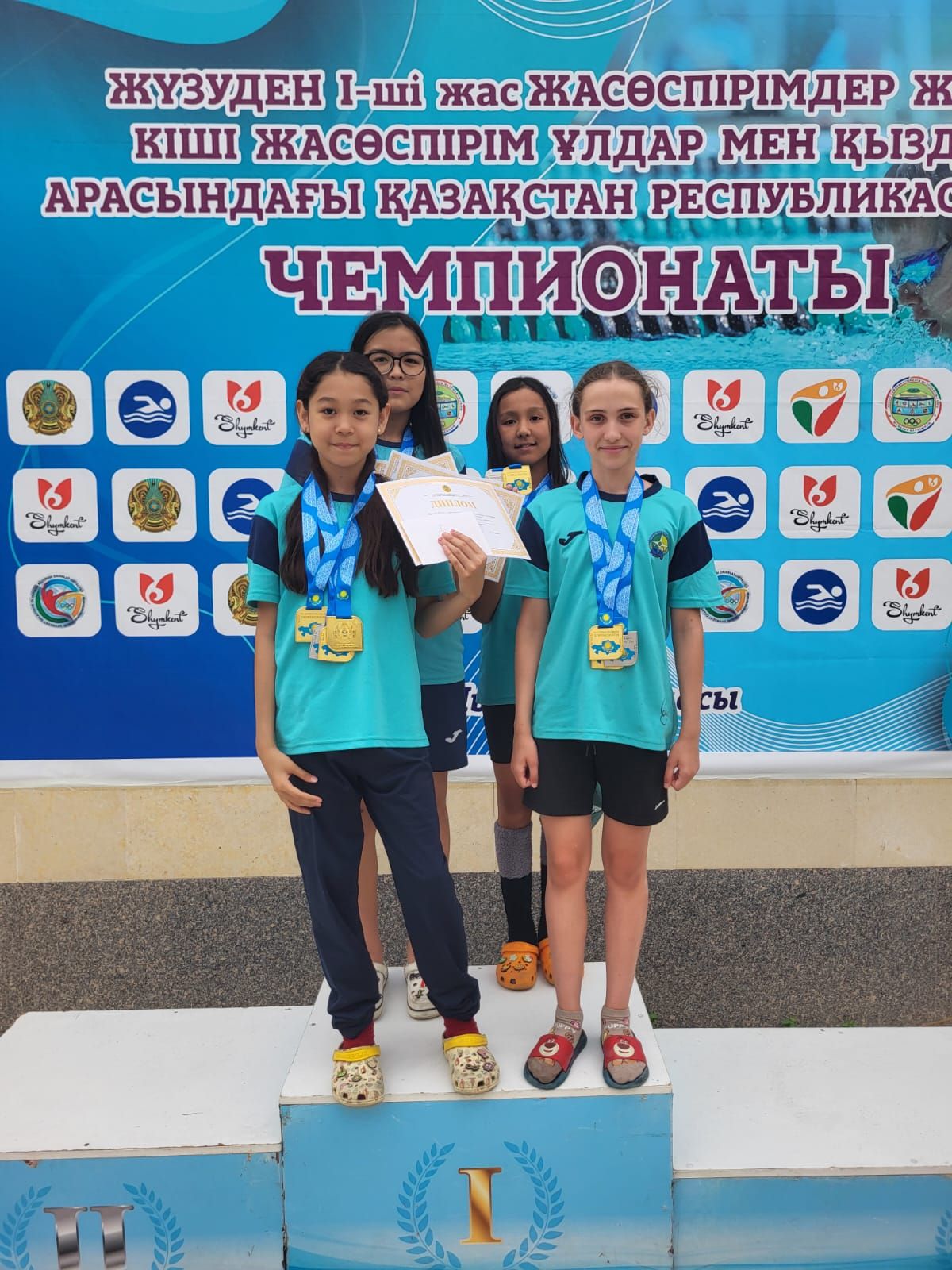 Девочки уверенно выиграли эстафеты 4×50 и 4×100 метров вольным стилем. В составе: Дария Мейрам, Адина Рахметова, Мария Рамазанова и Мируерт Серикова. Также серебро они взяли в комбинированной эстафете 4×50 метров (вместо Мируерт выступала Сали Аяна).