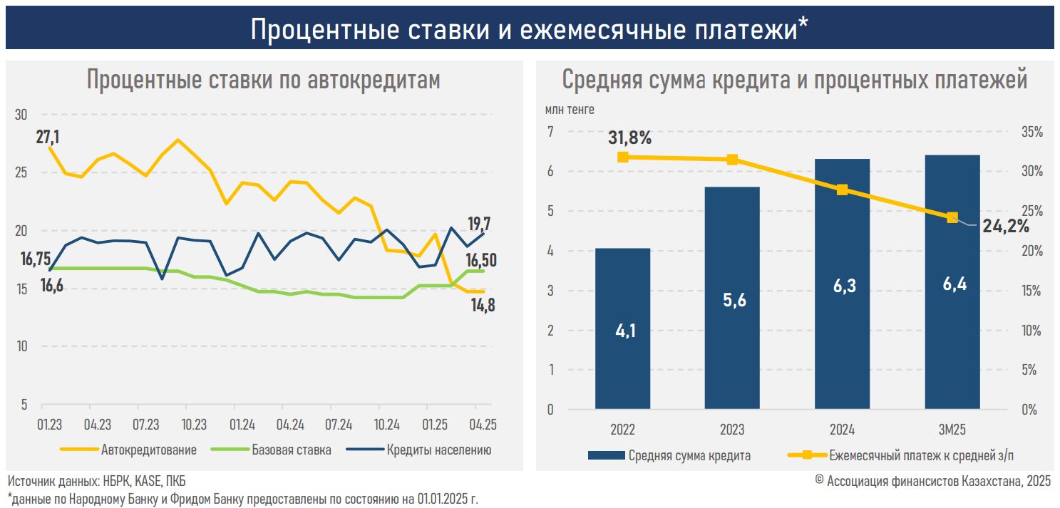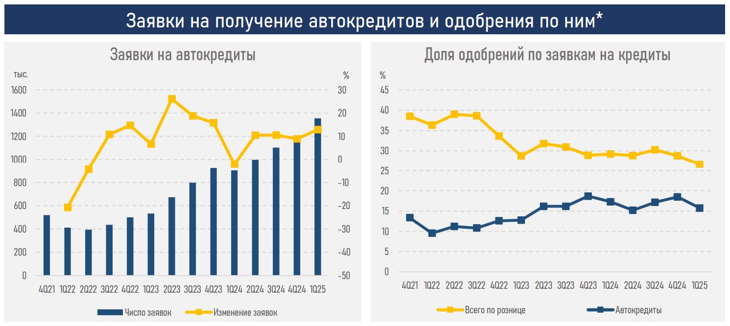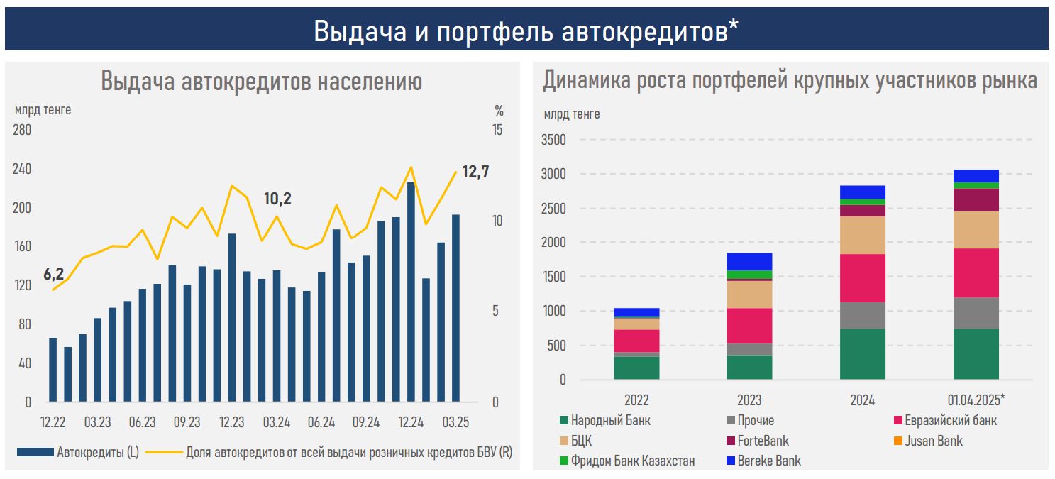 Автокредитование демонстрирует устойчивый рост благодаря маркетинговым акциям автосалонов, расширению партнёрских программ, цифровизации процедур получения займа и освобождению от расчёта коэффициента долговой нагрузки (КДН). Доля автокредитов в общем объёме розничных займов выросла до 12,7%против 10,2%годом ранее.