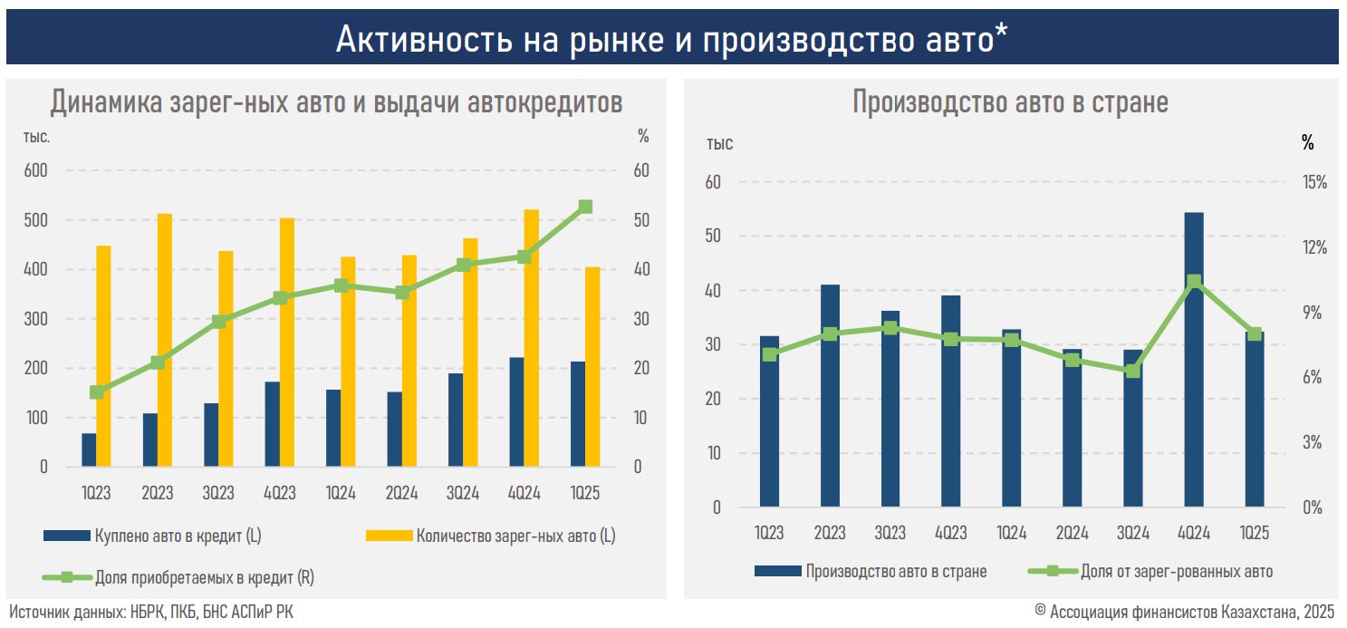 Согласно данным аналитического центра Ассоциации финансистов Казахстана (АФК), за январь-март было выдано 213 тыс. автокредитов на сумму 483 млрд тенге — на 36% больше в количественном выражении и на 22% — по объёму, по сравнению с аналогичным периодом прошлого года.