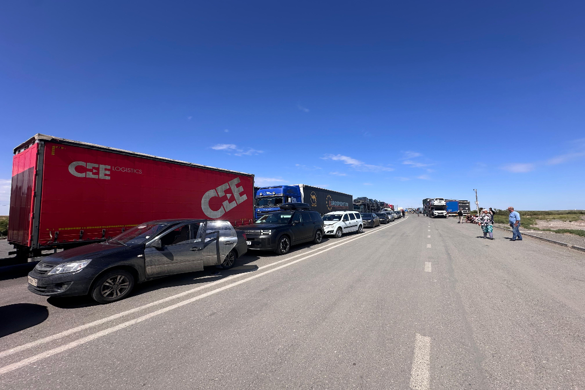 На автомобильном пункте пропуска «Курмангазы», соединяющем Атыраускую область с Астраханской, сложилась непростая ситуация — на въезде и выезде выстроились большие очереди из легковых автомобилей и фур.