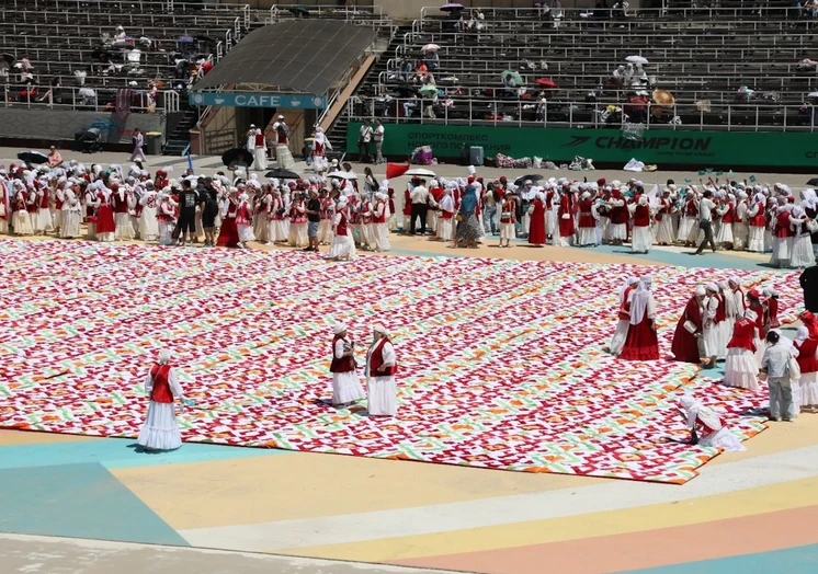 Наша землячка 35-летняя Айгерим Бултекова стала частью мировой лоскутной истории на катке «Медеу» в Алматы, где установлен мировой рекорд — 660 лоскутных одеял объединились в одну композицию, официально зафиксированную в Global World Book of Records. Проект называется «Аламан құрақ – 2025».