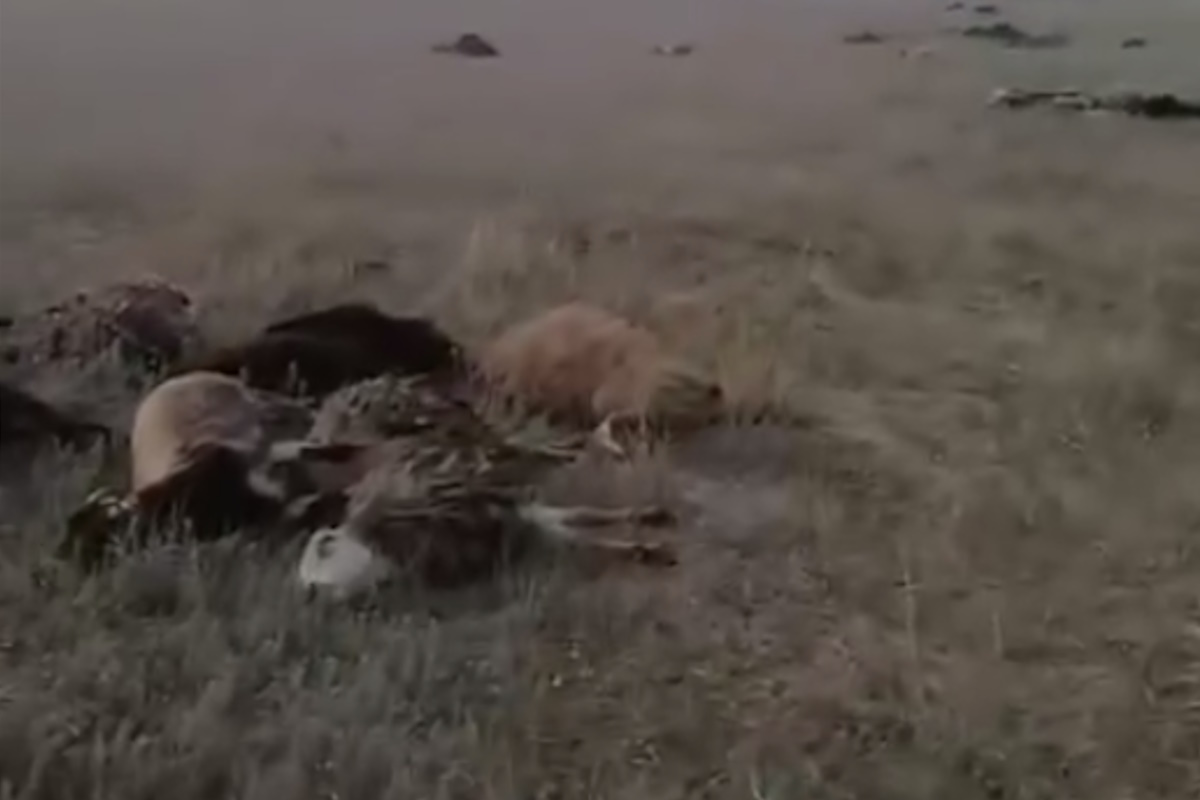 Как сообщили местные жители, десятки мертвых животных были обнаружены в степи после выпаса на привычном пастбище.