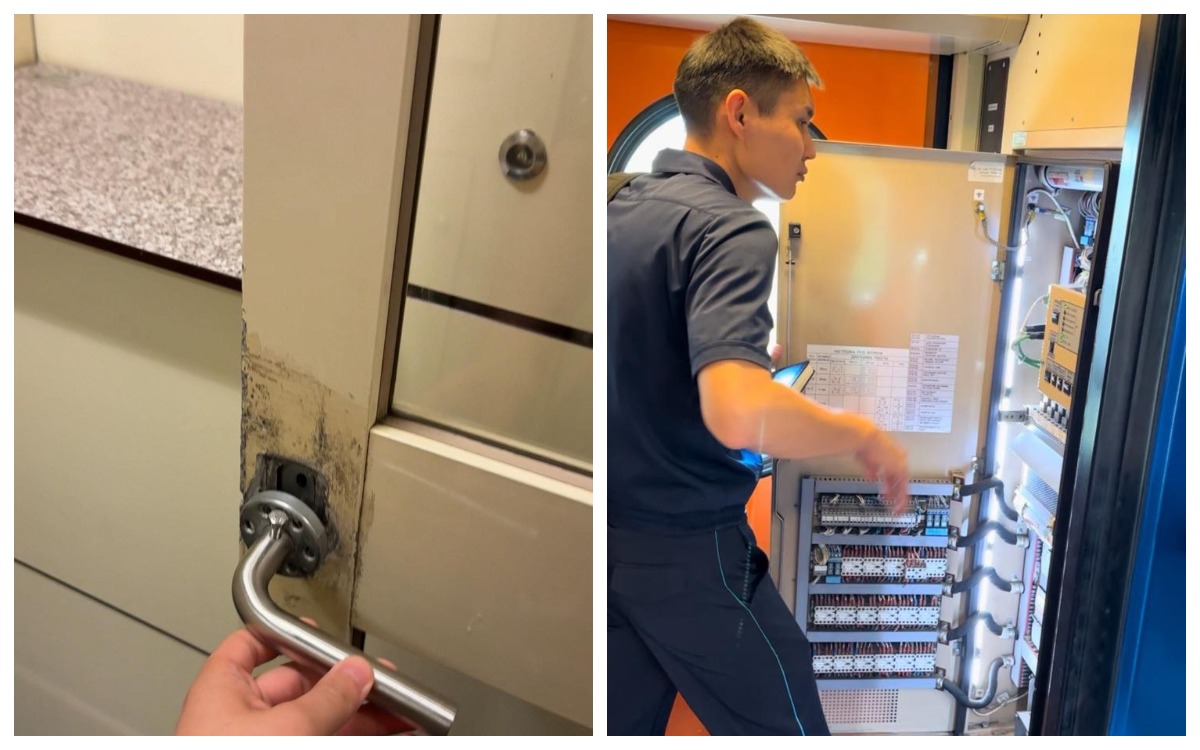 В поезде №53/54 выявлены сбои в работе мультимедийной системы, кондиционирования воздуха, розеток электропитания, электронных табло, а также просроченные аптечки. Составлены акты несоответствия, назначены служебные разбирательства.