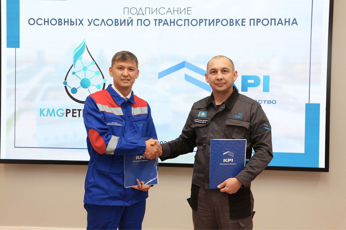 ТОО KMG PetroChem и ТОО Kazakhstan Petrochemical Industries Inc. (KPI Inc.) подписали Основные условия по транспортировке пропана. Документ скреплён подписями Диаза Диянова, заместителя председателя правления по развитию бизнеса KMG PetroChem, и Дамира Ашимова, генерального директора KPI Inc.