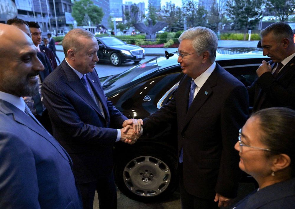 В столичном международном аэропорту Эсенбога президента Касым-Жомарта Токаева встретил глава Турции Реджеп Тайип Эрдоган. В честь главы нашего государства у трапа был выстроен почетный караул.