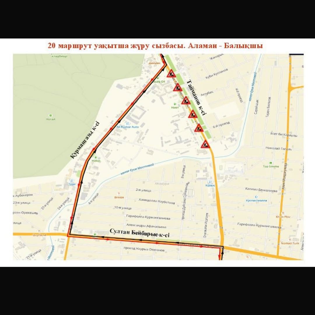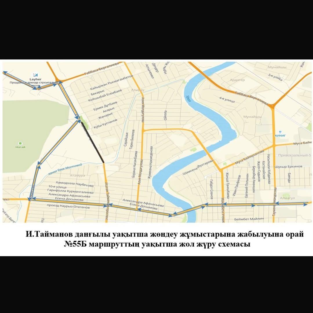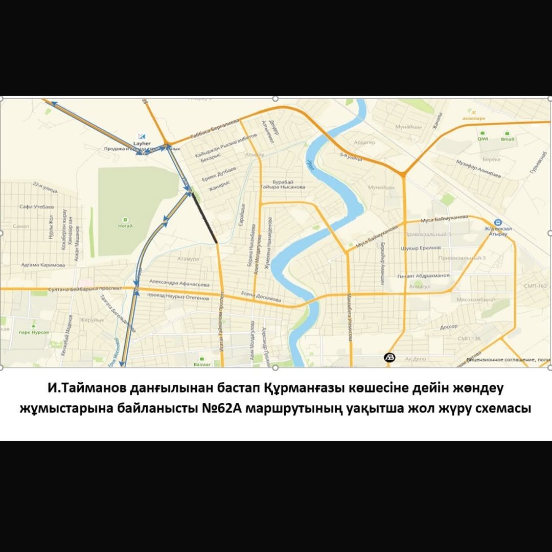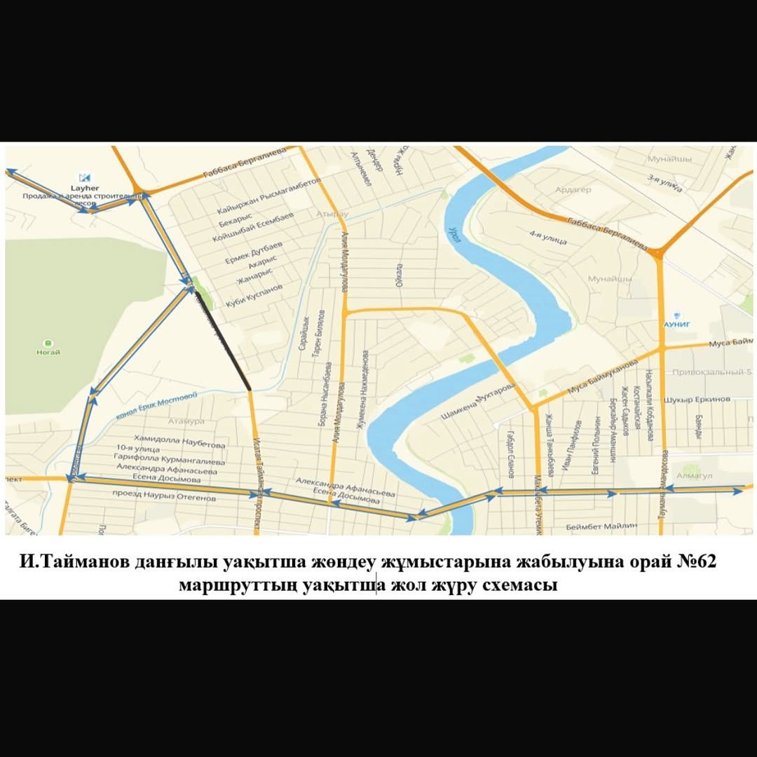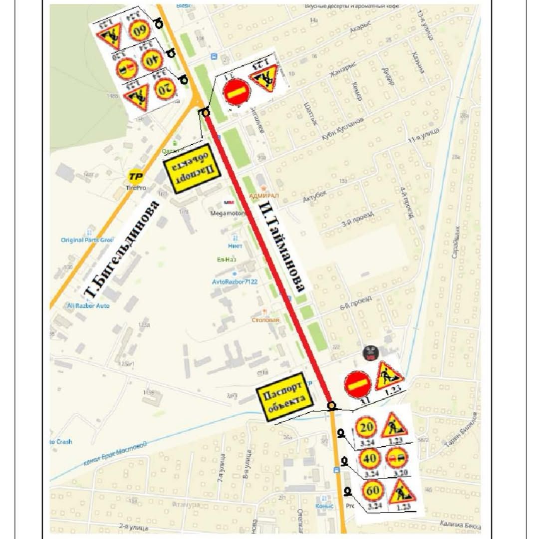 В Атырау с 30 июля 2025 года временно будет закрыто движение автотранспорта по проспекту Исатая Тайманова на участке от моста через ерик Мостовой до улицы Талгата Бигельдинова.
