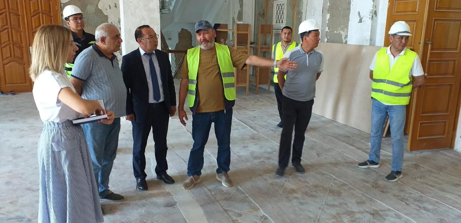 Группа общественного контроля ознакомилась с научно-реставрационными работами во Дворце культуры им. Курмангазы в Жилгородке.