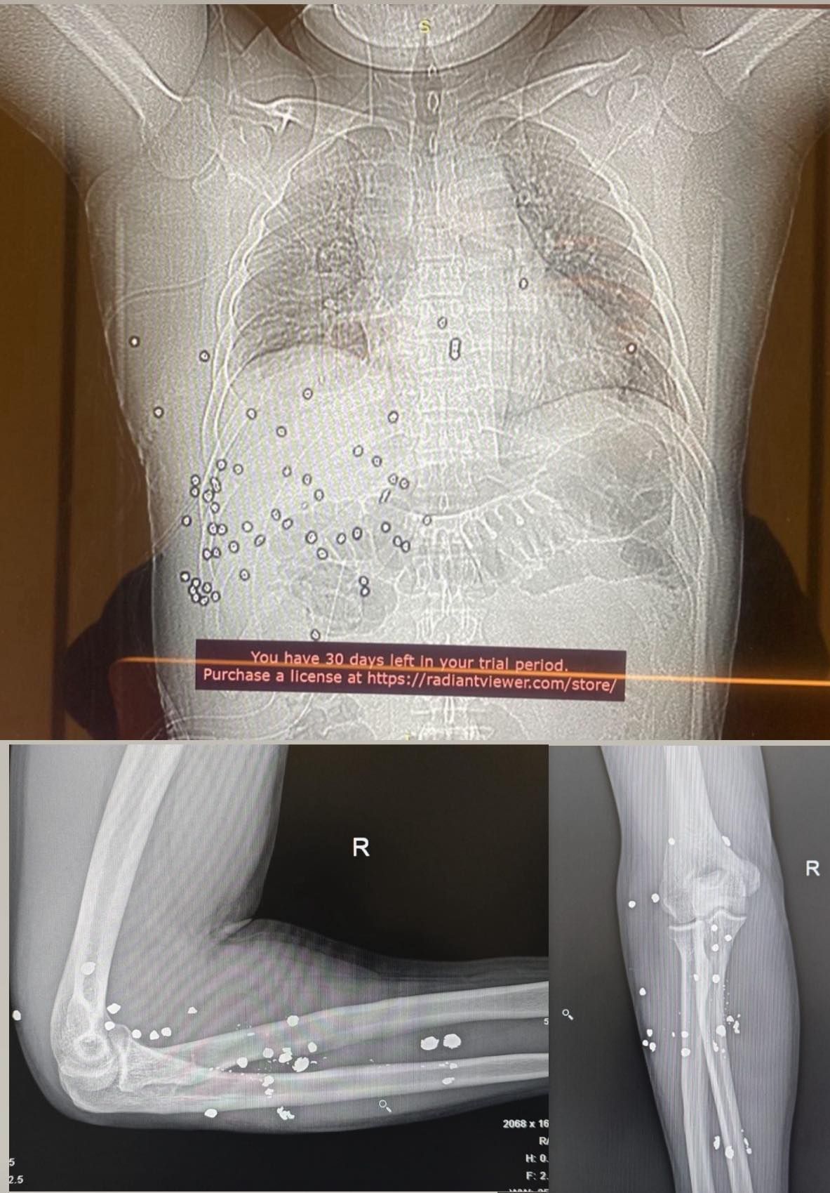 Он также напомнил, что более 60 дробей до сих пор находятся в его теле, что подтверждено медицинскими документами.