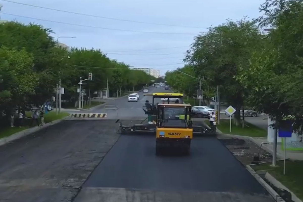 Ремонт охватывает участок длиной 400 метров. По информации акимата, на сегодняшний день завершена половина работ по укладке первого слоя асфальтового покрытия.