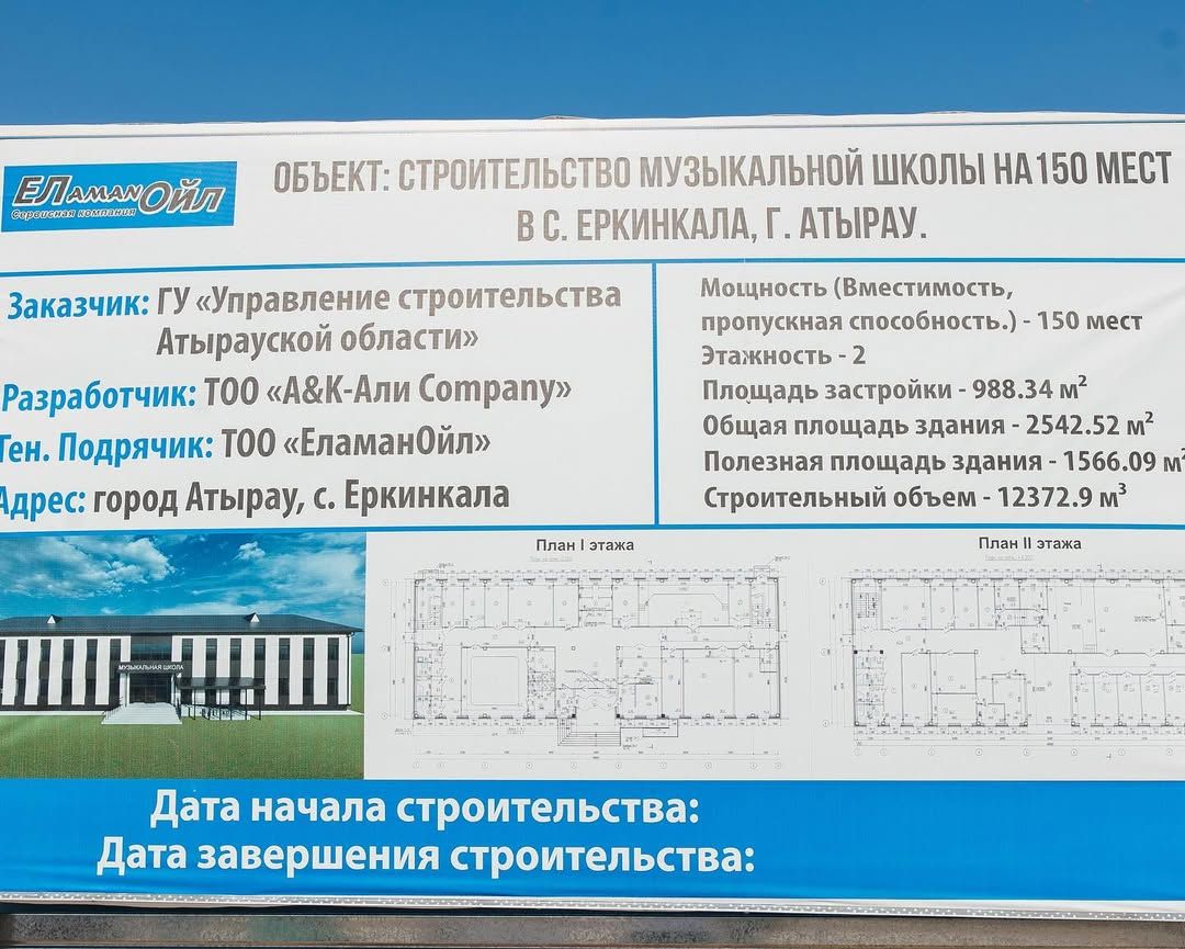 В пригородном селе Еркинкала Атырауской области начато строительство первой музыкальной школы на 150 мест.