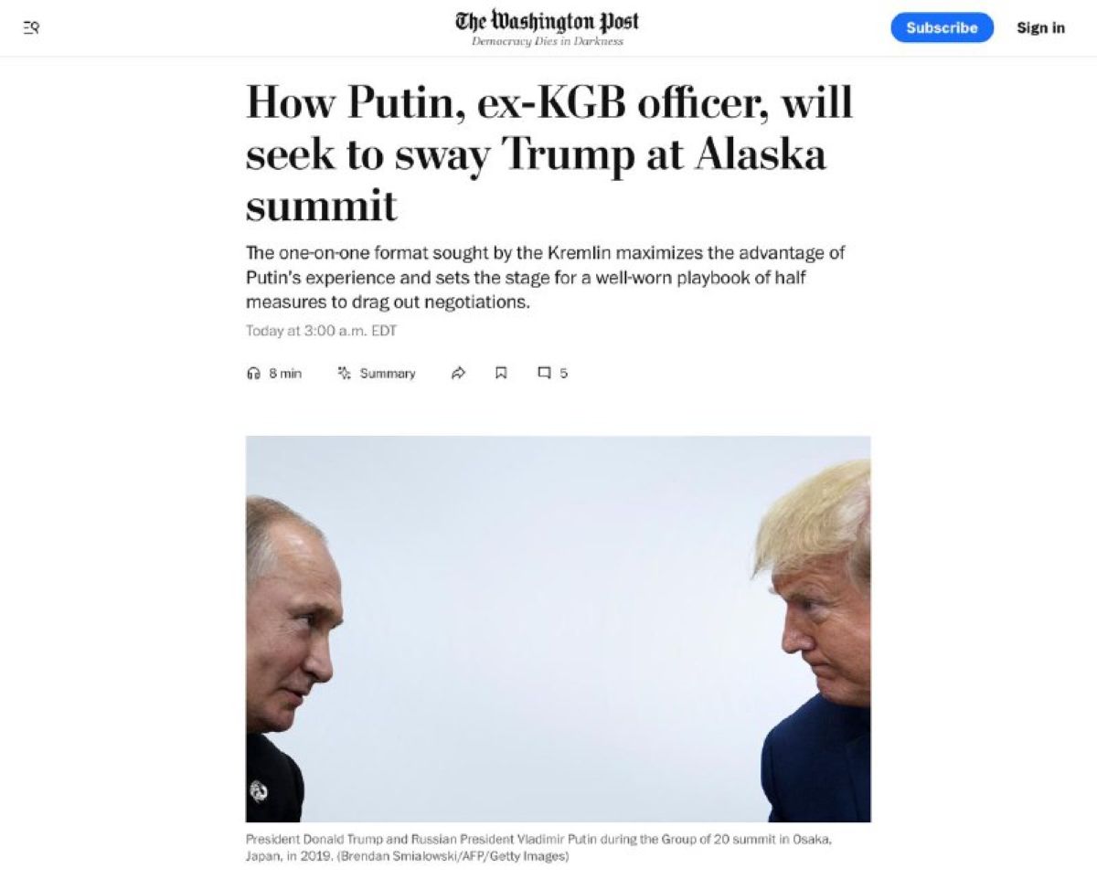 Владимир Путин готовился к встрече с Дональдом Трампом в спешке, поэтому у Кремля нет плана для предстоящего саммита, рассказал The Washington Post источник, близкий к Кремлю, передает Агентство. Новости.
