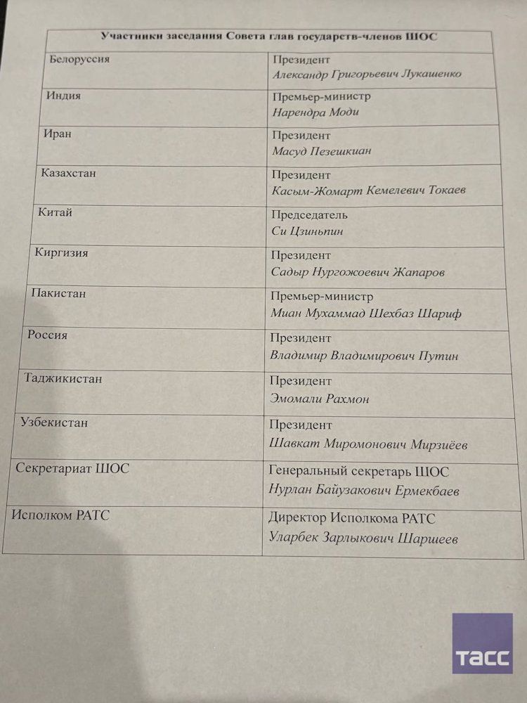 Со вступительным словом заседание открыл председатель КНР Си Цзиньпин. Далее выступил президент Беларуси Александр Лукашенко, который передаст слово премьер-министру Индии Нарендре Моди.
