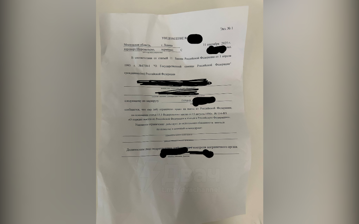 В России зафиксирован первый случай, когда мужчину не выпустили за границу из-за электронной повестки.