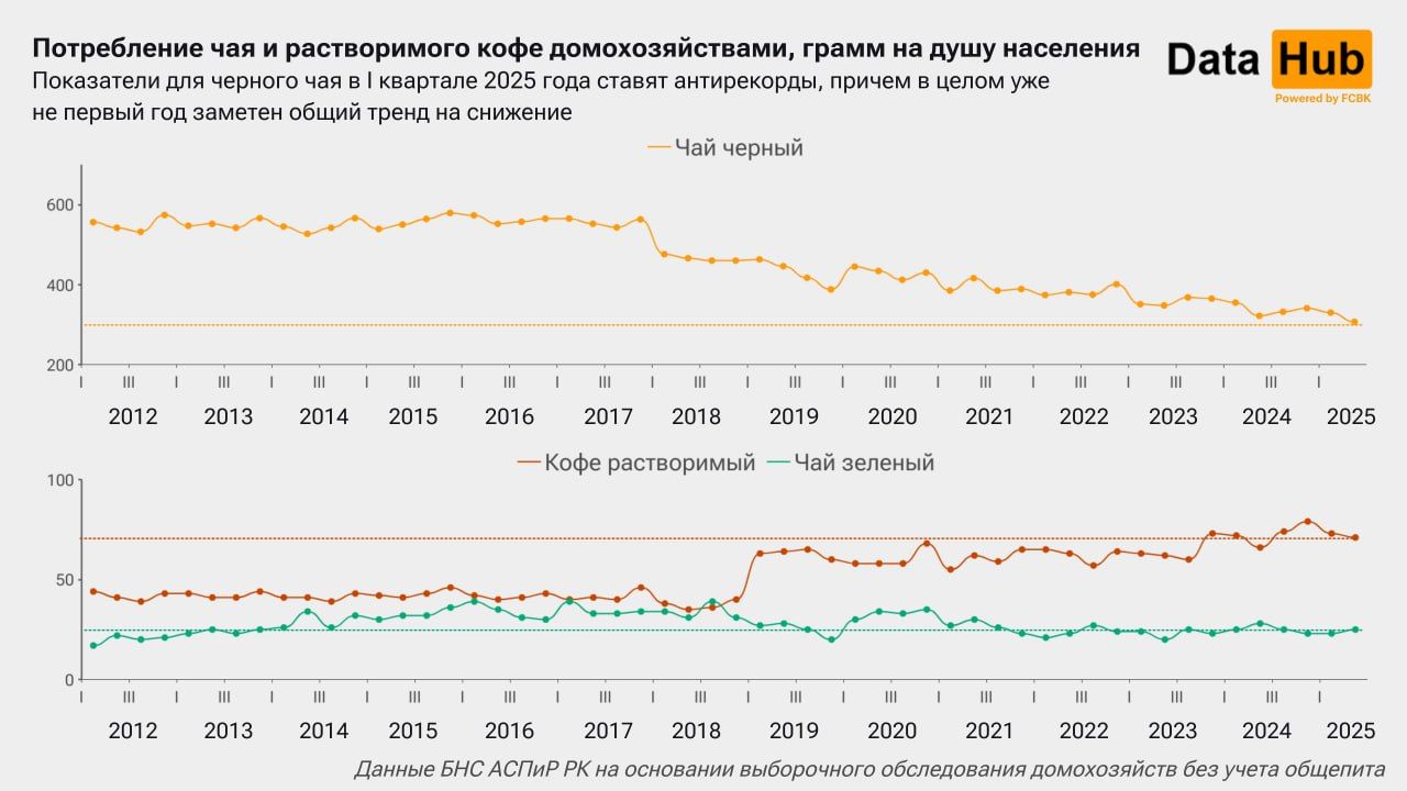 Во II квартале 2025 года потребление черного чая в Казахстане составило в среднем 307 граммов на душу населения., сообщает Data Hub.