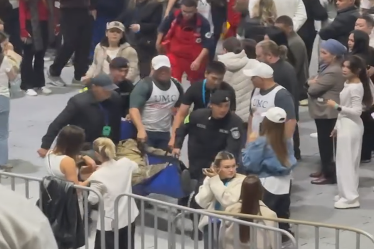 Не обошлось и без инцидентов — одному из зрителей стало плохо ещё до начала концерта, его унесли на носилках. Пользователи соцсетей выразили надежду, что с ним всё в порядке.