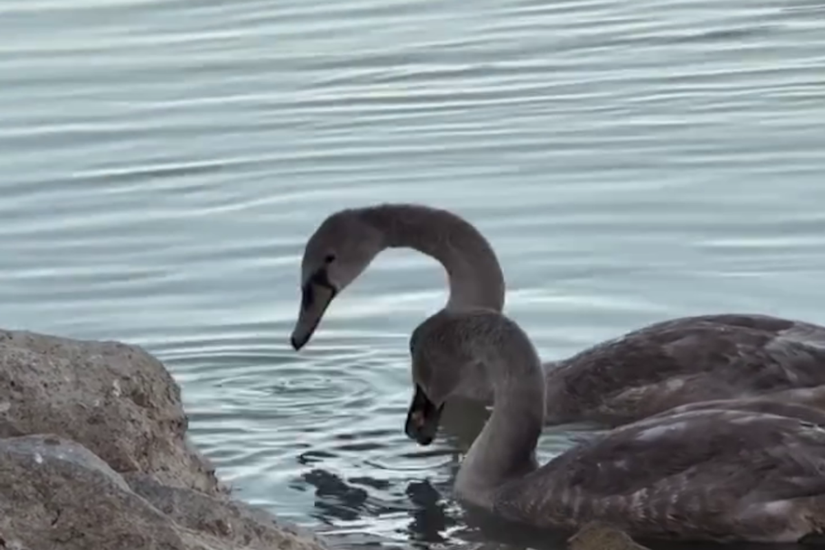В социальных сетях распространилась информация о двух лебедятах, которые не улетели со стаей на зимовку и остались на реке Жайык в Атырауской области.