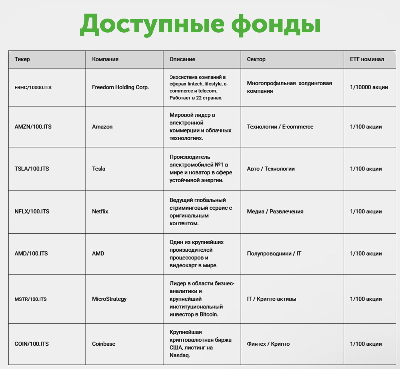 Особый интерес представляет локальный кейс с акциями FRHC, где дробление 1/10 000 сделало их максимально доступными. За последние 9 месяцев – с 29 декабря 2024 года по 29 сентября 2025 года – бумаги Freedom Holding прибавили 35%, аналогично выросли акции AMD (+34%), Netflix (+35%) и Coinbase (+35%), которые также входят в линейку дробных ETF. Таким образом, даже при небольших вложениях инвесторы могут собрать портфель из мировых лидеров.