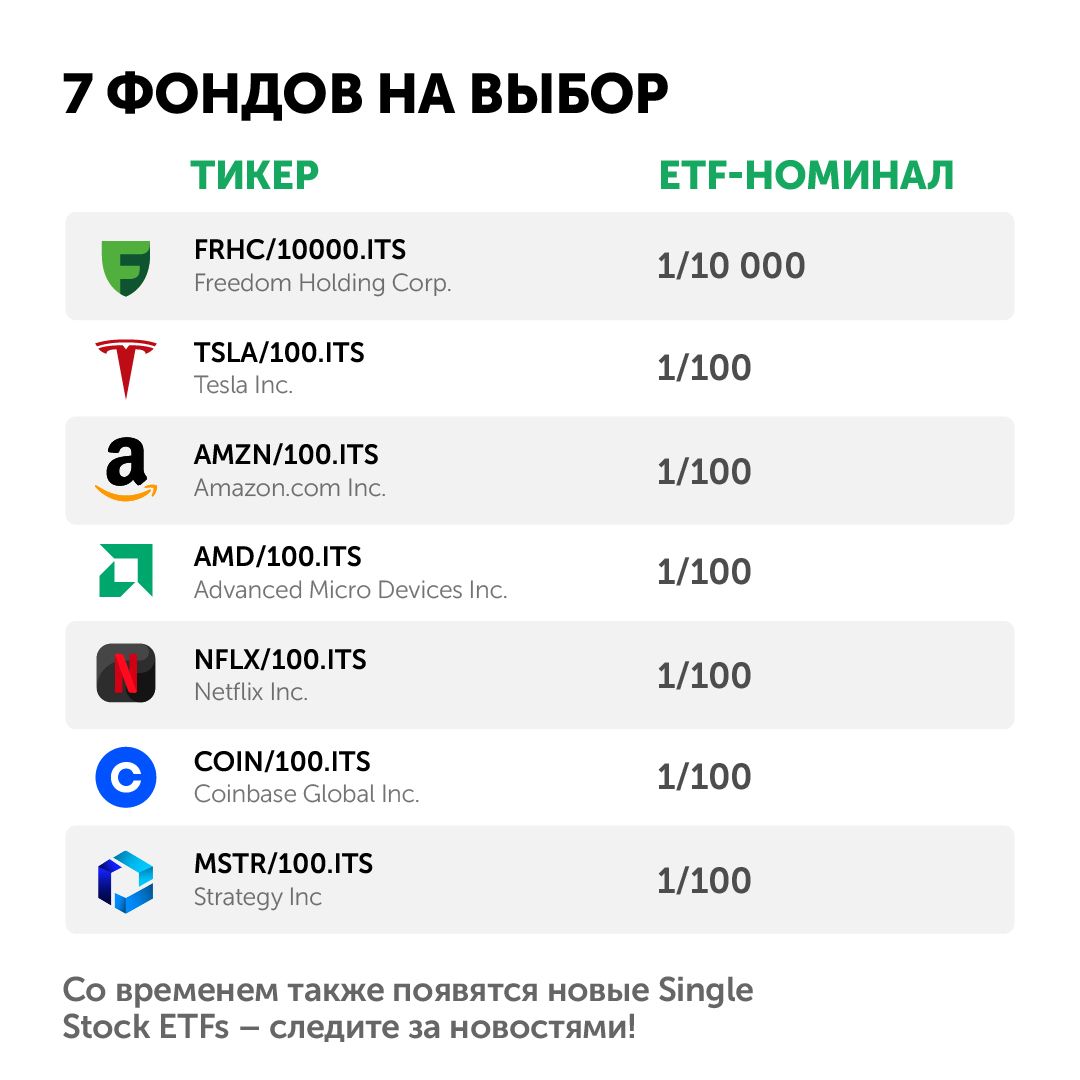 На казахстанском рынке запущен новый инструмент – Single-Stock ETF, дробные фонды на отдельные акции мировых компаний. Теперь инвесторы могут покупать не целые бумаги Amazon, Tesla или Netflix, а их доли. Такой формат снижает порог входа и позволяет формировать диверсифицированный портфель даже с минимальными вложениями.