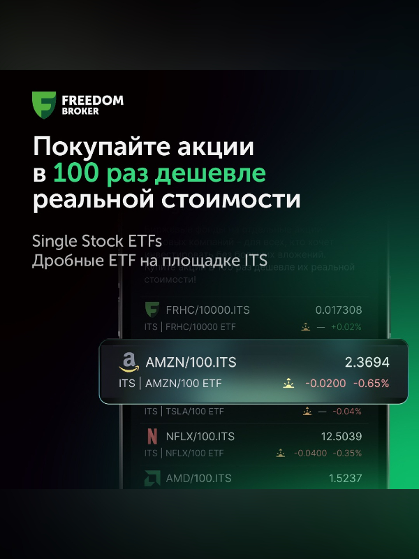 Фонд выпускает доли от стоимости акции, и теперь можно начать инвестировать буквально с центов. Например, при цене акции Tesla $329 одна сотая обошлась бы всего в $3,29, а акция Freedom Holding (FRHC) с ценой $174 через дробление 1/10 000 – всего в несколько центов. Инструмент зарегистрирован в Казахстане, торгуется в долларах на Astana International Exchange (AIX) и не требует дополнительных комиссий, что делает его удобным для долгосрочных инвесторов и активных трейдеров. Подробности о возможностях инвестирования представлены на сайте Freedom Broker.