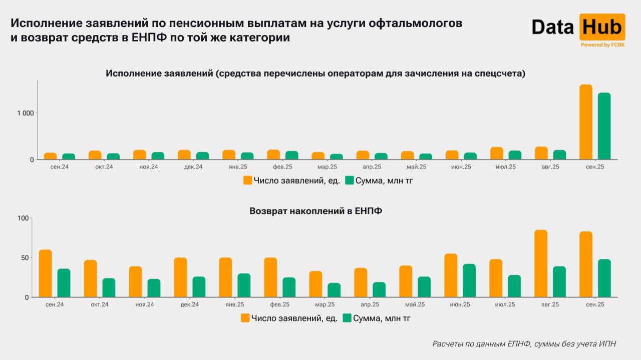 Аномального роста возвратов по офтальмологическим услугам, напротив, не наблюдается — за сентябрь зарегистрировано лишь 83 возврата на 48 млн тенге.