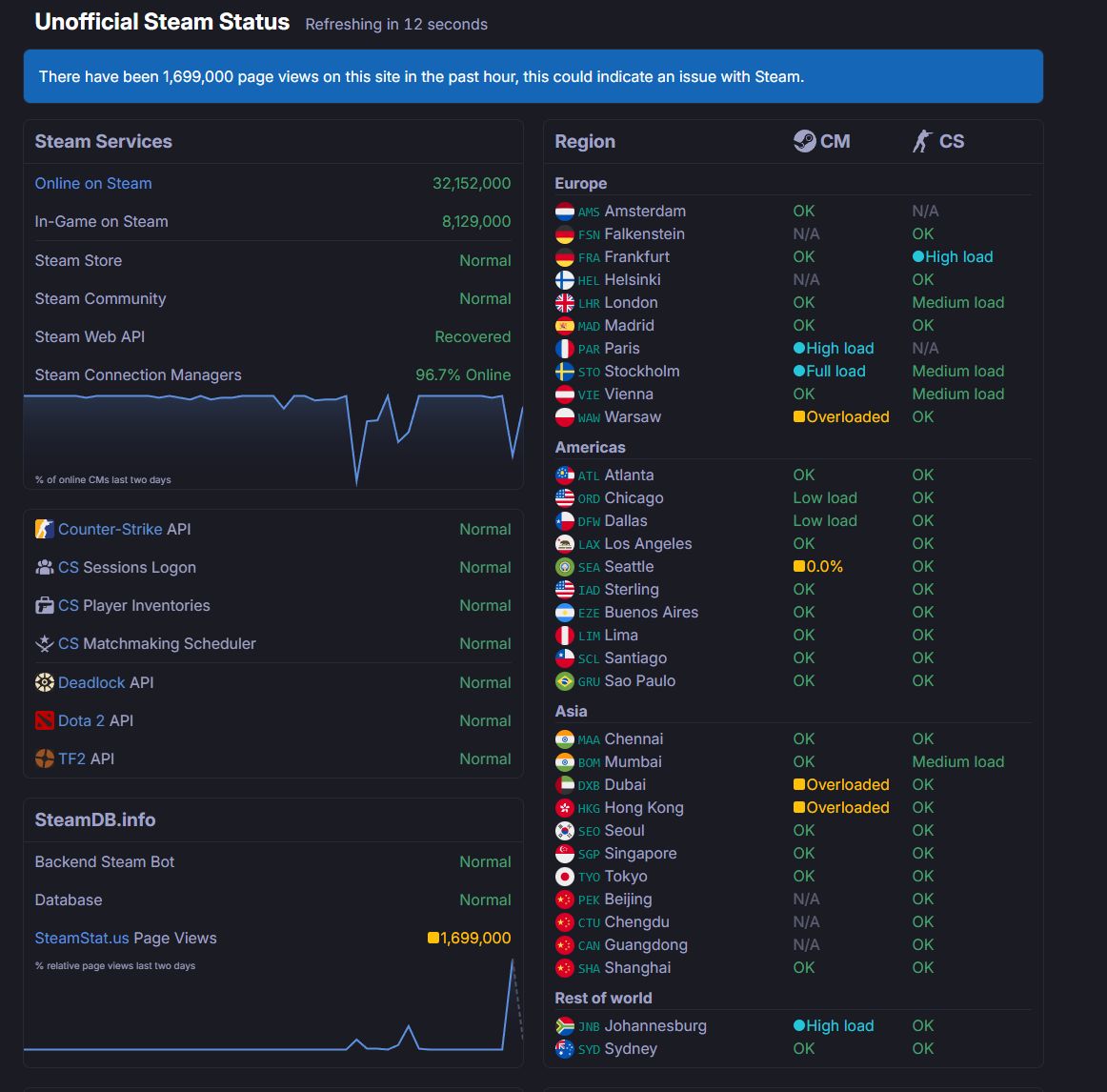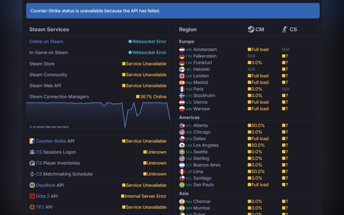 Игроки, пытающиеся войти в клиент Steam, сталкиваются с ошибками соединения, а те, кто пытается зайти на веб-сайт, сталкиваются со сбоями, пустыми страницами или контент просто не загружается или не скачивается.